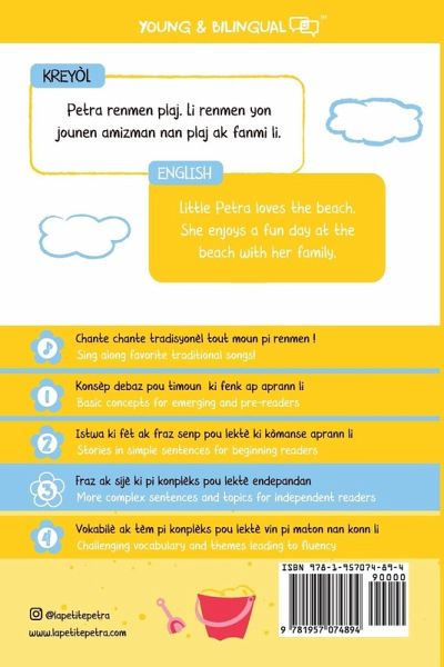 Little Petra loves the beach. She enjoys a fun day at the beach with her family. This is a bilingual book in Haitian Creole and English. This bedtime story is ideal for bilingual children of Haitian descent or who are learning Haitian creole.