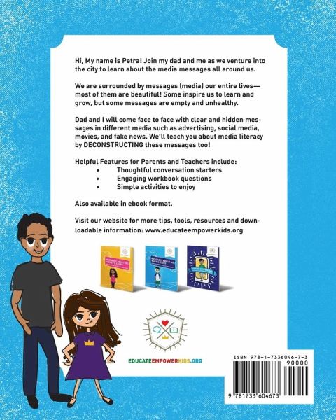 Hi, My name is Petra! Join my dad and me as we venture into the city to learn about the media messages all around us. We are surrounded by messages (media) our entire lives—most of them are beautiful! Some inspire us to learn and grow, but some messages are empty and unhealthy. Dad and I will come face to face with clear and hidden messages in different media such as advertising, social media, movies, and fake news. We’ll teach you about media literacy by DECONSTRUCTING these messages too! Helpful Features for Parents and Teachers include: • Thoughtful conversation starters • Engaging workbook questions • Simple activities to enjoy