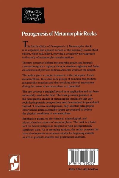 1. Definition and Types of Metamorphism.- 2. From Diagenesis to Metamorphism.- 3. Factors of Metamorphism.- General Considerations.- The Composition of the Fluid Phase.- Directed Pressure.- 4. Mineral Parageneses: The Building Blocks of Metamorphic Rocks.- 5. Graphical Representation of Metamorphic Mineral Parageneses.- Composition Plotting.- ACF Diagram.- A'FK Diagram.- How Are ACF and A'FK Diagrams Used?.- AFM Diagrams.- 6. Classification Principles: Metamorphic Facies versus Metamorphic Grade.- 7. The Four Divisions of Metamorphic Grade.- General Considerations.- The Terms Isograd and Isoreaction-Grad.- The Division of Very-Low-Grade Metamorphism.- The Division of Low-Grade Metamorphism.- The Change from Low-Grade to Medium-Grade Metamorphism.- The Change from Medium-Grade to High-Grade Metamorphism.- Granulite-High Grade; Regional Hypersthene Zone.- Pressure Divisions of the Metamorphic Grades.- Problems with the Al2SiO5 Species.- 8. General Characteristics of Metamorphic Terrains.- Metamorphic Zones in Contact Aureoles.- Metamorphic Zones in Regional Metamorphism.- Paired Metamorphic Belts.- 9. Metamorphic Reactions in Carbonate Rocks.- General Considerations.- Metamorphism of Siliceous Dolomitic Limestones.- Formation of Wollastonite.- Metamorphism of Carbonates at Very High Temperature and Very Low Pressure.- 10. Metamorphism of Marls.- Plagioclase & Calcite Assemblages.- Vesuvianite.- 11. Metamorphism of Ultramafic Rocks: Systems MgO-SiO2-CO2-H2O and MgO-CaO-SiO2-H2O.- 12. Metamorphism of Mafic Rocks.- Transformations Except Those of Very-Low-Grade Metamorphism at Low Pressures.- Very-Low-Grade Metamorphism at Low Pressures.- Evaluation of Metamorphic Changes at Very-Low Grade.- The Role of CO2 in Very-Low-Grade Metamorphism.- 13. Very-Low-GradeMetamorphism of Graywackes.- 14. Metamorphism of Pelites.- General Statement.- Metamorphism of Pelitic Rocks at Very-Low and Low-Grade.- Metamorphism of Pelitic Rocks at Medium- and High-Grade.- 15. A Key to Determine Metamorphic Grades and Major Isoreaction-Grads or Isograds in Common Rocks.- Very-Low-Grade Metamorphism.- Low-Grade.- Medium- and High-Grade.- Geothermometers and Geobarometers.- Sequences of Isoreaction-Grads or Isograds.- 16. Regional Hypersthene Zone (Granolite High Grade).- Nomenclature and Mineralogical Features of "Granulites".- Metamorphism of Granolites and Related Granoblastites.- Petrogenetic Considerations.- 17. Eclogites.- 18. Anatexis, Formation of Migmatites, and Origin of Granitic Magmas.- Anatexis: General Considerations.- Experimental Anatexis of Rocks Composed of Alkali Feldspar, Plagioclase, and Quartz.- Experimental Anatexis of Rocks Composed of Plagioclase and Quartz but Lacking Alkali Feldspar.- Formation of Migmatites.- Formation of Granitic Magmas by Anatexis.- Appendix: Nomenclature of Common Metamorphic Rocks.- Names of Important Rock Groups.- Prefixes.- Classification.
