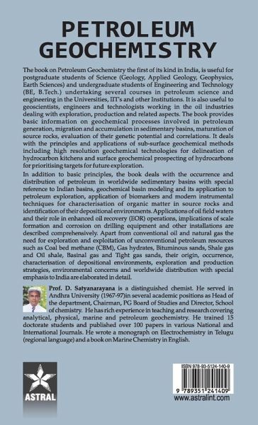 The book on Petroleum Geochemistry the first of its kind in India, is useful for postgraduate students of Science (Geology, Applied Geology, Geophysics, Earth Sciences) and undergraduate students of Engineering and Technology (BE, B.Tech.) undertaking several courses in petroleum science and engineering in the Universities, IIT's and other Institutions. It is also useful to geoscientists, engineers and technologists working in the oil industries dealing with exploration, production and related aspects. The book provides basic information on geochemical processes involved in petroleum generation, migration and accumulation in sedimentary basins, maturation of source rocks, evaluation of their genetic potential and correlations. It deals with the principles and applications of sub-surface geochemical methods including high resolution geochemical technologies for delineation of hydrocarbon kitchens and surface geochemical prospecting of hydrocarbons for prioritising targets for future exploration. In addition to basic principles, the book deals with the occurrence and distribution of petroleum in worldwide sedimentary basins with special reference to Indian basins, geochemical basin modeling and its application to petroleum exploration, application of biomarkers and modern instrumental techniques for characterisation of organic matter in source rocks and identification of their depositional environments. Applications of oil field waters and their role in enhanced oil recovery (EOR) operations, implications of scale formation and corrosion on drilling equipment and other installations are described comprehensively. Apart from conventional oil and natural gas the need for exploration and exploitation of unconventional petroleum resources such as Coal bed methane (CBM), Gas hydrates, Bituminous sands, Shale gas and Oil shale, Basinal gas and Tight gas sands, their origin, occurrence, characterisation of depositional environments, exploration and production strategies, environmental concerns and worldwide distribution with special emphasis to India are elaborated in detail.