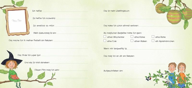 Für alle, die die Geschichten rund um Petronella Apfelmus und ihre Freunde mögen, gibt es jetzt etwas Neues: Ein ganzes Buch, in dem die eigenen Freunde etwas über sich erzählen können. In diesem Freundebuch können kleine Hexenfreunde verraten wo sie wohnen, wie alt sie sind und was sie sich herbeizaubern würden, wenn sie Hexenkräfte hätten wie Petronella. Mit zahlreichen Eintragseiten zum Beschreiben, Bemalen oder um Fotos einzukleben.