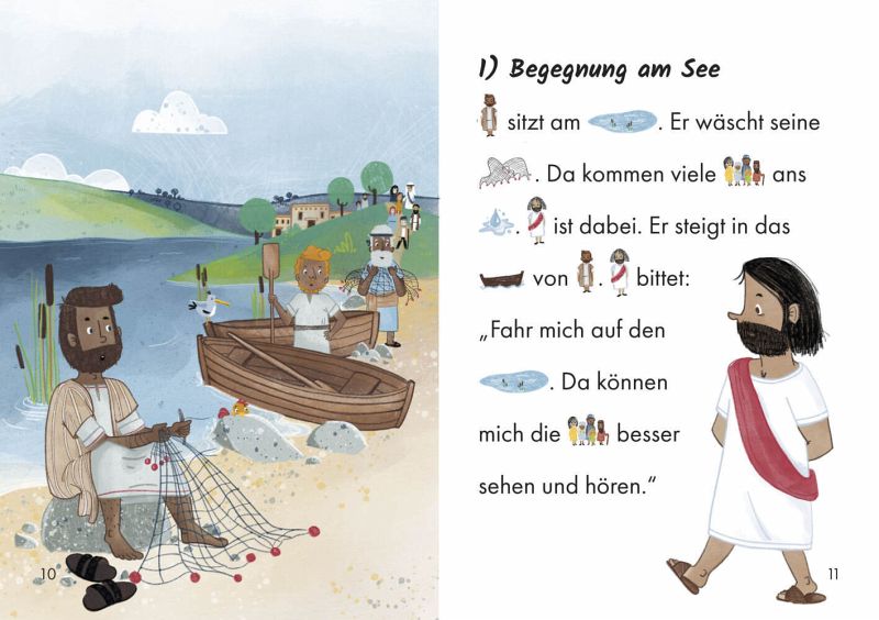 Der neue Titel von Katrin Grieco (Text) und Arabell Watzlawik (Illustrationen) in der Brillenbär-Reihe für Leseanfänger. Petrus ist ein einfacher Fischer am See Genezareth, als er Jesus zum ersten Mal begegnet. Und das, was er erzählt, stellt sein Leben auf den Kopf. Er lässt seine Netze zurück und geht mit Jesus. Durch ihn lernt er Gottes Liebe neu kennen und ist bei vielen Wundern und Heilungen von Kranken dabei.Jesus ist sein Freund und er will immer bei ihm bleiben, auch wenn es gefährlich wird. Doch als Jesus verhaftet wird, behauptet Petrus, dass er ihn nicht kennt. Dann stirbt Jesus am Kreuz. Und drei Tage später ist das Grab leer. Petrus kehrt zurück an den See Genezareth. Da kennt er sich aus. Und dort begegnet ihm der auferstandene Jesus und Petrus erlebt: Jesus hat ihn immer noch lieb und er darf neu anfangen.Die biblischen Petrus-Geschichten aus frischer Perspektive für Leseanfänger nacherzählt und gestaltet. Die wichtigsten Hauptwörter werden im Text durch Bilder ersetzt, sodass Eltern und Kinder die Geschichte gemeinsam entdecken.