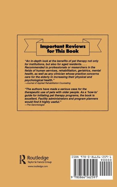 Contents A Brief Introduction to Animal-Facilitated Therapy * The Therapists' Casebook * The Human/Animal Bond * Training a Therapy Dog * Implementing Animal Therapy in the Institution * A Dog (or Cat) in Residence * Program Suggestions for Animal-Facilitated Therapy * Pet Visitation Programs * Therapy Dogs in Action * Animal-Facilitated Therapy in the Community * Non-Canine Therapists * Evaluating the Program * Bibliography and Selected Readings * Appendix I: Therapy Dogs International * Appendix II: Organizations Involved in Pet Therapy * Appendix III: Current Legislation * Appendix IV: JACOPIS Assessment Procedures