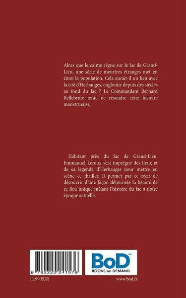 Alors que le calme règne sur le lac de Grand-Lieu, une série de meurtres étranges met en émoi la population. Cela aurait-il un lien avec la cité d'Herbauges, engloutie depuis des siècles au fond du lac ? Le Commandant Bernard Bellebrute tente de résoudre cette histoire monstrueuse.