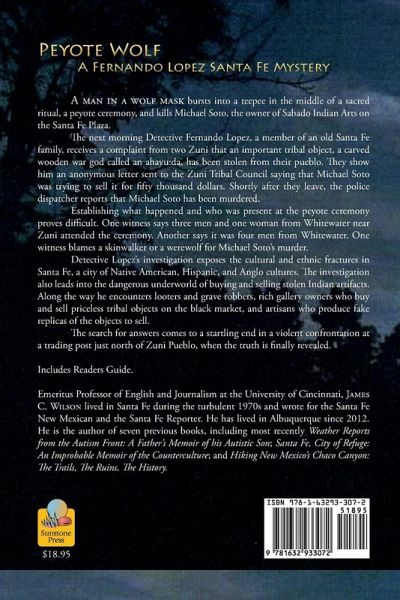 Emeritus Professor of English and Journalism at the University of Cincinnati, James C. Wilson lived in Santa Fe in the 1970s and wrote for the Santa Fe New Mexican and the Santa Fe Reporter. He has lived in Albuquerque since 2012. He is the author of twenty-one previous books, including Hiking New Mexico's Chaco Canyon: The Trails, The Ruins, The History; Santa Fe, City of Refuge: An Improbable Memoir of the Counterculture and New Mexico's Chaco Canyon: Photographing the Ancient City, in addition to Peyote Wolf, Smokescreen, Ghost Canyon, The Dead Go Fast, Painted Skull Ranch, Taos Gothic, Devil on Canyon Road, Taos Vendetta, Pecos Reckoning, The Witchcraft Murders, Santa Fe Assassin, A Death Demanded, and Stealing the Hopi Snake Dance, in the Fernando Lopez Santa Fe Mystery Series. He teaches a Mystery Writing Workshop regularly at the downtown Santa Fe Public Library.