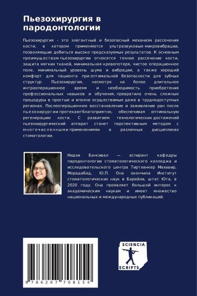 P'ezohirurgiq - äto älegantnyj i bezopasnyj mehanizm rassecheniq kosti, w kotorom primenqütsq ul'trazwukowye mikrowibracii, pozwolqüschie dobit'sq wysoko predskazuemyh rezul'tatow. K osnownym preimuschestwam p'ezohirurgii otnosqtsq tochnoe rassechenie kosti, zaschita mqgkih tkanej, minimal'naq krowopoterq, chistoe operacionnoe pole, minimal'nyj urowen' shuma i wibracii, a takzhe horoshij komfort dlq pacienta pri optimal'noj bezopasnosti dlq zubnyh struktur. P'ezohirurgiq, nesmotrq na bolee dlitel'noe intraoperacionnoe wremq i neobhodimost' priobreteniq professional'nyh nawykow i obucheniq, prewratila ochen' slozhnye procedury w prostye i wpolne osuschestwimye dazhe w trudnodostupnyh regionah. Posleoperacionnoe wosstanowlenie i zazhiwlenie ran posle p'ezohirurgii protekaütblagopriqtno, obespechiwaq optimal'nuü regeneraciü kosti. S razwitiem tehnologicheskih dostizhenij p'ezohirurgicheskij apparat stanet perspektiwnym metodom s mnogochislennymi primeneniqmi w razlichnyh disciplinah stomatologii.