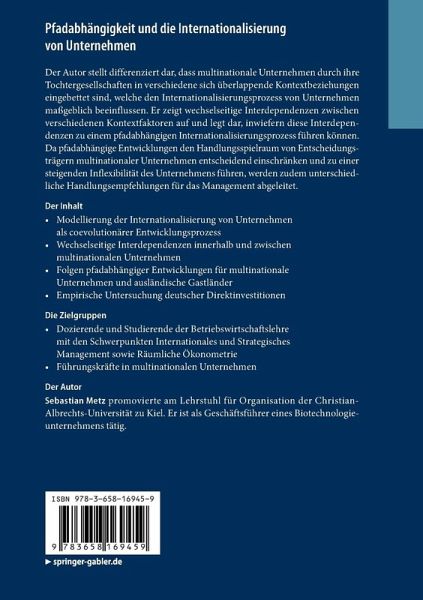 Der Autor stellt differenziert dar, dass multinationale Unternehmen durch ihre Tochtergesellschaften in verschiedene sich überlappende Kontextbeziehungen eingebettet sind, welche den Internationalisierungsprozess von Unternehmen maßgeblich beeinflussen. Er zeigt wechselseitige Interdependenzen zwischen verschiedenen Kontextfaktoren auf und legt dar, inwiefern diese Interdependenzen zu einem pfadabhängigen Internationalisierungsprozess führen können. Da pfadabhängige Entwicklungen den Handlungsspielraum von Entscheidungsträgern multinationaler Unternehmen entscheidend einschränken und zu einer steigenden Inflexibilität des Unternehmens führen, werden zudem unterschiedliche Handlungsempfehlungen für das Management abgeleitet.