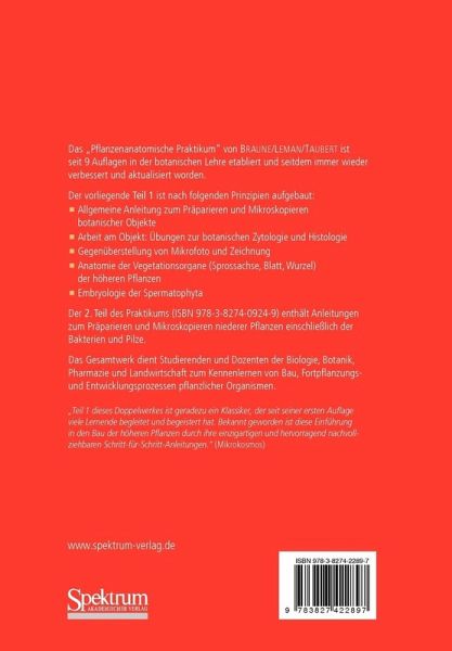 Das "Pflanzenanatomische Praktikum" ist seit 9 Auflagen in der botanischen Lehre etabliert und seitdem immer wieder verbessert und aktualisiert worden. Der vorliegende Band 1 ist nach folgenden Prinzipien aufgebaut: Allgemeine Anleitung zum Präparieren und Mikroskopieren botanischer Objekte, Übungen zur botanischen Zytologie und Histologie, Gegenüberstellung von Mikrophoto und Zeichnung, Anatomie der Vegetationsorgane der höheren Pflanzen, Embryologie der Spermatophyta. Band 2 des "Pflanzenanatomischen Praktikums" enthält Anleitungen zum Präparieren und Mikroskopieren niederer Pflanzen einschließlich der Bakterien und Pilze. Das Gesamtwerk dient Studierenden und Dozenten der Biologie, Botanik, Pharmazie und Landwirtschaft zum Kennenlernen von Bau, Fortpflanzungs- und Entwicklungsprozessen pflanzlicher Organismen. "Band 1 dieses Doppelwerkes ist geradezu ein Klassiker, der seit seiner ersten Auflage viele Lernende begleitet und begeistert hat." (Mikrokosmos)