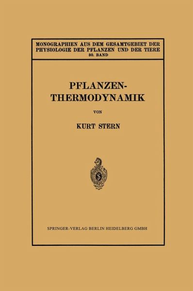 I. Die physikalischen Grundlagen der Pflanzenthermodynamik.- 1. Thermodynamische Grundbegriffe und der 1. Hauptsatz der Thermodynamik.- 2. Der 2. Hauptsatz der Thermodynamik.- 3. Phasenregel und Phasenübergänge.- 4. Chemische Energie.- 5. Elektrische Energie.- 6. Lichtenergie.- 7. Grenzflächenenergie.- II. Die Anwendungen der Thermodynamik auf die Vorgänge in der Pflanze.- 8. Die Anwendung des 1. und 2. Hauptsatzes.- 9. Thermodynamik der Phasenübergänge in der Pflanze.- 10. Thermodynamik chemischer Prozesse in der Pflanze.- 11. Thermodynamik elektrischer Vorgänge in der Pflanze.- 12. Thermodynamik der CO2 Assimilation.- 13. Thermodynamik der Grenzflächenerscheinungen in der Pflanze.- 14. Allgemeine Thermodynamik physiologischer Leistungen der Pflanze.- Namenverzeichnis.