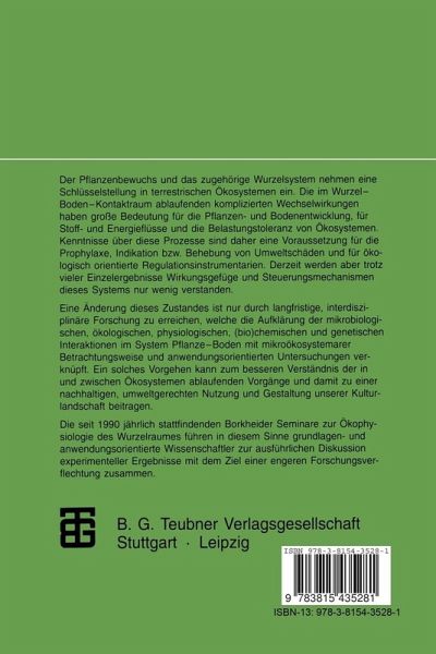 1 Einfluß natürlicher und anthropogener Faktoren auf mikrobielle Leistungen und Stoffumsätze im Wurzelraum.- Auswirkungen einer Wiederbefeuchtung auf die C- und N-Mineralisierung in der Humusauflage von Kiefernökosystemen.- Detektion eines Rhizosphären-Inokulums mit Hilfe antibiotikaresistenter Mutanten und immunologischer Methoden.- Selektion und Anwendung von Wirtsspezifitätsgenen zum Nachweis von Rhizobium-Speziesim Boden.- Einfluß verschiedener Bewirtschaftungsmaßnahmen auf die physiologische Leistungsfähigkeit der nodulierenden Rhizobium-Population.- Einfluß der Ernte- und Wurzelrückstände nachwachsender Rohstoffe auf die biologische Aktivität des Bodens.- 2 Mikroben - Pflanze - Wechselwirkungen und ihr Einfluß auf das Pflanzenwachstum.- Mykorrhiza in der Krautschicht von Kippenforsten in der Niederlausitz - methodische Voruntersuchungen und erste Ergebnisse.- Einsatz der arbuskulären Mykorrhiza im Anbau landwirtschaftlicher Kulturpflanzen in Thailand.- Physiologie, Morphologie und Gesundheit von mykorrhizierten Pflanzen.- Einfluß von AM-Pilzen und Pseudomonas fluorescens auf das Wachstum und den Zierwert von Tagetes erecta.- Stickstoffaneignung und symbiontische N2-Fixierung von Leguminosen auf verschiedenen Substraten.- Zur Bedeutung und zu möglichen Funktionen pflanzlicher Isoperoxidasen im Wurzelraum anhand ausgewählter Beispiele.- Nitrogen fixation and fertilization of soybeans.- Auslesekriterien für die Auffindung von Körnerleguminosenidiotypen mit N2-Fixierung nach der Blüte.- Mechanismen der Phosphatmobilisierung aus Calciumphosphaten durch zwei Bakterienstämme.- 3 Wurzelexsudation.- Kurzzeitige Abgabe organischer Säuren aus Proteoidwurzeln von Hakea undulata (Proteaceae).- Ausscheidung von organischen Säuren durch dieZuckerrübenwurzel und deren Bedeutung für die P-Mobilisierung im Boden.- 4 Stoffaufnahme und Stoffumsatz durch Pflanzenwurzeln.- Nitrat- und Phosphataufhahmeraten verschiedener Wurzelzonen von Mais in Abhängigkeit von Wurzelalter und Kohlenhydratstatus der Pflanzen.- Zeitlich und räumlich hochauflösende Bodenwasserpotentialmessungen (Tensio-metrie) im Freilandexperiment und Laborversuch.- Hydraulische und osmotische Reaktion primärer Maiswurzeln auf Bodenaustrocknung im Rhizotronversuch.- Stickstoffaufhahme bei Tomate in einem geschlossenen hydroponischen System in Abhängigkeit vom Stickstoffangebot.- Einfluß organischer Schadstoffe (PAK, PCB) auf die Löslichkeit und Verfügbarkeit von Schwermetallen und deren Akkumulation in der Roggenwurzel.- Erhöhung des Boden-pH durch Decarboxylierung organischer Anionen.- Entwicklung der am N-Umsatz beteiligten Mikroorganismengruppen in der Rhizosphäre der Tomate in hydroponischer Kultur in Abhängigkeit vom EC-Wert der Nährlösung.- Verzeichnis der Teilnehmer.- Autorenregister.