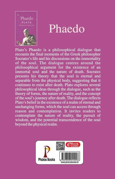 Plato's Phaedo is a philosophical dialogue that recounts the final moments of the Greek philosopher Socrates's life and his discussions on the immortality of the soul. The dialogue centres around the philosophical argument for the existence of an immortal soul and the nature of death. Socrates presents his theory that the soul is eternal and separable from the physical body, suggesting that it continues to exist after death. Plato explores several philosophical ideas through the dialogue, such as the theory of forms, the nature of reality, and the concept of the soul's journey after death. The dialogue reflects Plato's belief in the existence of a realm of eternal and unchanging forms, which the soul can access through reason and contemplation. It invites readers to contemplate the nature of reality, the pursuit of wisdom, and the potential transcendence of the soul beyond the physical realm.