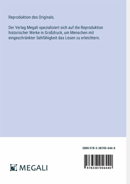 Reproduktion des Originals. Der Verlag Megali spezialisiert sich auf die Reproduktion historischer Werke in Großdruck, um Menschen mit eingeschränkter Sehfähigkeit das Lesen zu erleichtern.