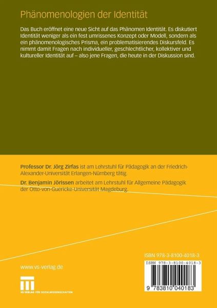 Die Grundidee des Buches besteht darin, strukturelle Dimensionen der Identitätsvorstellungen auf phänomenologische und anthropologische Sachverhalte zu beziehen, d.h. nicht die Frage nach der Identität zu stellen, sondern diejenigen Themenfelder zu rekonstruieren, die als konstitutiv für den Identitätsbegriff betrachtet werden müssen. Identität erscheint in diesem Sinne weniger als ein fest umrissenes Konzept oder Modell, sondern als ein phänomenologisches Prisma, ein problematisierendes Diskursfeld: Denn es sind die Schwierigkeiten des modernen Lebens, die es notwendig erscheinen lassen, auf den Gedanken der Identität zu rekurrieren.