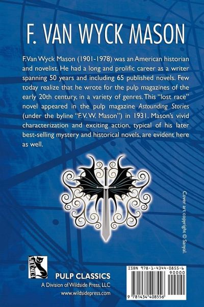 F. Van Wyck Mason (1901-1978) was an American historian and novelist. He had a long and prolific career as a writer spanning 50 years and including 65 published novels. Few today realize that he wrote for the pulp magazines of the early 20th century, in a variety of genres. This science fiction novel appeared in the pulp magazine Astounding Stories (under the byline "F.V.W. Mason") in 1931. Mason's vivid characterization and exciting action, typical of his later best-selling mystery and historical novels, are evident here as well.