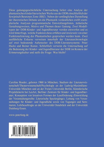 Diese gattungsgeschichtliche Untersuchung liefert eine Analyse der phantastischen kinderliterarischen Werke aus der DDR einschließlich der Sowjetisch Besetzten Zone (SBZ). Neben der umfänglichen Darstellung der theoretischen Debatte um die Phantastik verdeutlichen zwölf exemplarische Analysen programmatische Entwicklungslinien, ästhetische Gestaltungsweisen, Motive und Themen dieser Gattung. Zwei Modelltypen der DDR-Kinder- und Jugendliteratur werden entworfen und es wird hinterfragt, welche Funktion diese erfüllen und inwieweit von einer Funktionalisierung des Phantastischen gesprochen werden kann. Zwei ausführliche Exkurse verweisen innerhalb der Literaturchronologie auf zwei bedeutende Außenseiter des DDR-Literatursystems: Peter Hacks und Reiner Kunze. Schließlich verweist die Untersuchung auf die Bedeutung der Kinder- und Jugendliteratur der DDR im Kontext der Erinnerungskultur und stellt die Frage: Was bleibt?