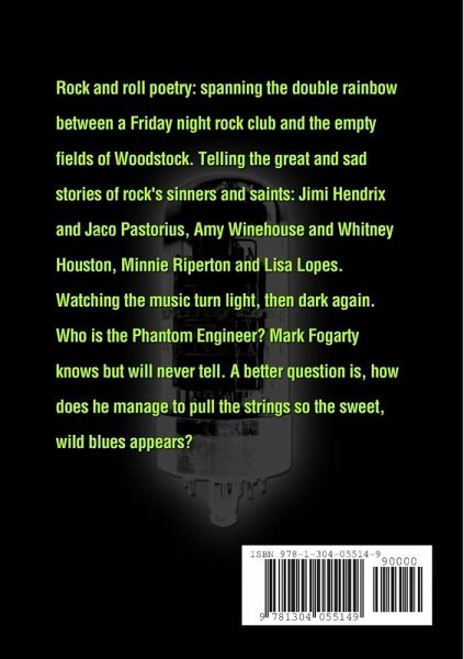 Rock and roll poetry! PHANTOM ENGINEER is the creative reaction to fifty years of listening to music, playing music, recording music. The natural joyousness of rock is big in these pages, plus the sadness of remembering those who died young. Jimi Hendrix, Jaco Pastorius, Whitney Houston, Amy Winehouse, Lisa Lopes, Syd Barrett, Nick Drake and Nicky Hopkins are all remembered for talent (or genius) that bloomed young and died young. Meanwhile, the Phantom Engineer pulls the strings and makes the blues and the zydeco appear!