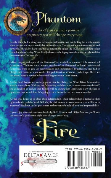 A night of passion and a positive pregnancy test will change everything. Kessily Campbell, a rising star environmental lawyer, was not looking for a relationship when she met the mysterious Falkor at a conference. The attraction was instantaneous and powerful. She didn't have time for commitment in her life so, she invited him to her room for a fun evening. When Kessily discovers she is pregnant, she must face the realities that come with this new life. Falkor, dragon and alpha of the Phantom Fire, would lose too much if he committed to a woman. Tradition stated when a member of the Phantom Fire found their eternal flame they were to give up their position and immortality. In addition, they had to pledge their first-born son to the Winged Warriors when he reached age. There are not many human women who are willing to accept those terms. As the head lawyer on an important case involving the Wind River Mountains, Kessily is very busy. Walking into a meeting with her boss to meet a new co-plaintiff, she is shocked to realize that Falkor will be joining her legal team. Now she has to figure out how to tell him he's going to be a father in the next seven months. As the trial heats up so does their relationship. Their relationship is tested as they fight to find a path forward. Will they be able to reach a compromise that will benefit everyone? Find out in this passionate and suspenseful tale of love and responsibility. If you enjoy romantic suspense books by K.C. Crowne and Lillian Monroe you'll love this story of a passionate night that changes everything.