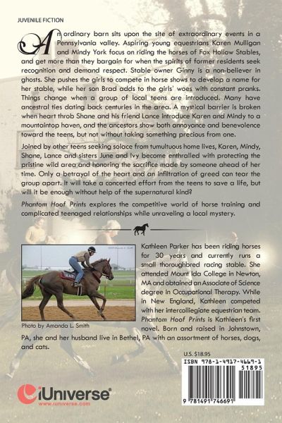An ordinary barn sits upon the site of extraordinary events in a Pennsylvania valley. Aspiring young equestrians Karen Mulligan and Mindy York focus on riding the horses of Fox Hollow Stables, and get more than they bargain for when the spirits of former residents seek recognition and demand respect. Stable owner Ginny is a non-believer in ghosts. She pushes the girls to compete in horse shows to develop a name for her stable, while her son Brad adds to the girls' woes with constant pranks. Things change when a group of local teens are introduced. Many have ancestral ties dating back centuries in the area. A mystical barrier is broken when heart throb Shane and his friend Lance introduce Karen and Mindy to a mountaintop haven, and the ancestors show both annoyance and benevolence toward the teens, but not without taking something precious from one. Joined by other teens seeking solace from tumultuous home lives, Karen, Mindy, Shane, Lance and sisters June and Ivy become enthralled with protecting the pristine wild area and honoring the sacrifice made by someone ahead of her time. Only a betrayal of the heart and an infiltration of greed can tear the group apart. It will take a concerted effort from the teens to save a life, but will it be enough without help of the supernatural kind? Phantom Hoof Prints explores the competitive world of horse training and complicated teenaged relationships while unraveling a local mystery.