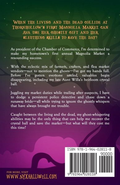 As president of the Chamber of Commerce, I'm determined to make my hometown's first annual Magnolia Market a resounding success. With the eclectic mix of farmers, crafters, and flea market vendors-not to mention the ghosts-I've got my hands full. Before I've gotten everyone settled, valuables begin disappearing, including my late Aunt Willa's heirloom crystal ball. Juggling my market duties while trailing after suspects, I have to dodge a persistent police detective and chase down a runaway bride-all while trying to ignore the ghostly whispers that have always brought me trouble. Caught between the living and the dead, my ghost-whispering abilities may be the only thing that can help me recover the crystal ball and save the market-but what will they cost me this time?