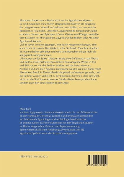 Pharaonen findet man in Berlin nicht nur im Ägyptischen Museum - sie sind zusammen mit anderen altägyptischen Motiven als Zeugnisse der "Ägyptomanie" überall im Stadtraum anzutreffen, wo man seit der Renaissance Pyramiden, Obelisken, ägyptisierende Tempel und Gräber errichtete, Statuen von Sphingen, Löwen, Göttern und Königen aufstellte oder Fassaden mit Hieroglyphen, ägyptisierenden Bildern oder Ansichten Ägyptens dekorierte. Viel ist davon verloren gegangen, teils durch Kriegseinwirkungen, aber auch durch die rasante Bautätigkeit in der Großstadt. Manches ist jedoch bis heute erhalten geblieben und wird vom Betrachter oft gar nicht als altägyptisch wahrgenommen. "Pharaonen an der Spree" bietet erstmalig eine Einführung in das Thema und stellt in zwölf faktenreichen Artikeln herausragende Werke in Text und Bild vor, so z.B. das Berliner Schloss und das Neue Museum.An Berlin und am alten Ägypten Interessierte werden auf eine bisher meist übersehene Exotik in Deutschlands Hauptstadt aufmerksam gemacht, und die Berliner werden vielleicht zu der Erkenntnis kommen, dass ihre Stadt, nicht nur die Titel Spree-Athen oder Sünden-Babel beanspruchen kann, sondern auch den eines Theben an der Spree.