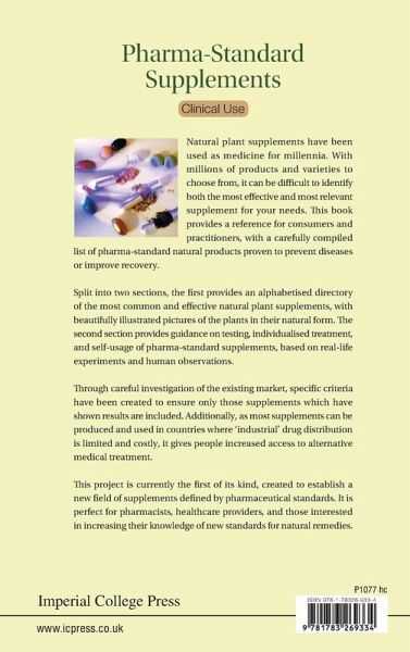Natural plant supplements have been used as medicine for millennia. With millions of products and varieties to choose from, it can be difficult to identify both the most effective and most relevant supplement for your needs. This book provides a reference for consumers and practitioners, with a carefully compiled list of pharma-standard natural products proven to prevent diseases or improve recovery. Split into two sections, the first provides an alphabetised directory of the most common and effective natural plant supplements, with beautifully illustrated pictures of the plants in their natural form. The second section provides guidance on testing, individualised treatment, and self-usage of pharma-standard supplements, based on real-life experiments and human observations. Through careful investigation of the existing market, specific criteria have been created to ensure only those supplements which have shown results are included. Additionally, as most supplements can be produced and used in countries where 'industrial' drug distribution is limited and costly, it gives people increased access to alternative medical treatment. This project is currently the first of its kind, created to establish a new field of supplements defined by pharmaceutical standards. It is perfect for pharmacists, healthcare providers, and those interested in increasing their knowledge of new standards for natural remedies.
