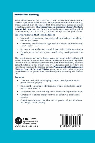 Written especially for the pharmaceutical industry professional, this book addresses each part of the life-cycle of engineering change control. The author covers issues in the EU and US and describes the operational requirements and responsibilities that ensure change controls are effectively applied and recorded. Providing guidance on how to demonstrate that a change control system is working, the book includes chapters on computer validation and customization of the change process to each project's needs. Case histories and anecdotes illustrate key points and provide a basis for change control training. The book gives readers a toolbox for ensuring that adequate controls are implemented.