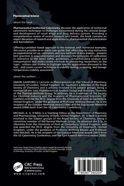 Pharmaceutical Isothermal Calorimetry discusses the application of isothermal calorimetric techniques to challenges encountered during the rational design and development of novel drugs and drug delivery systems. Providing a comprehensive review of recent research and trends, this book contains an expert discussion of research and applications to pharmaceutical characterization and formulation.
