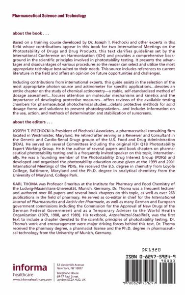 Based on a training course developed by Dr. Joseph T. Piechocki and other experts in this field whose contributions appear in this book for two International Meetings on the Photostability of Drugs and Drug Products, this text clarifies the guidelines set by the International Conference on Harmonization (ICH) and provides a comprehensive background in the scientific principles involved in photostability testing. Presenting the advantages and disadvantages of various procedures so the reader can select and utilize the most appropriate technique best-suited to their needs, this source includes references to current literature in the field and offers an opinion on future opportunities and challenges.
