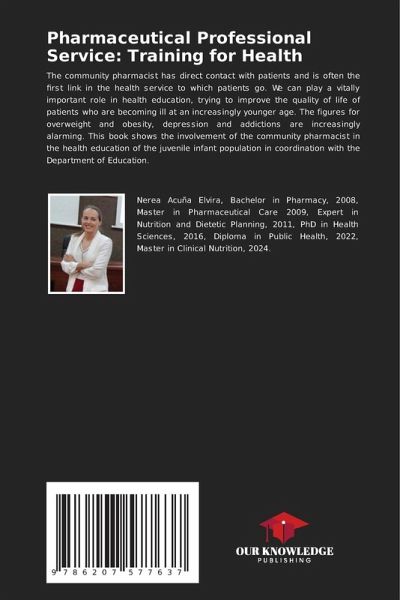 The community pharmacist has direct contact with patients and is often the first link in the health service to which patients go. We can play a vitally important role in health education, trying to improve the quality of life of patients who are becoming ill at an increasingly younger age. The figures for overweight and obesity, depression and addictions are increasingly alarming. This book shows the involvement of the community pharmacist in the health education of the juvenile infant population in coordination with the Department of Education.