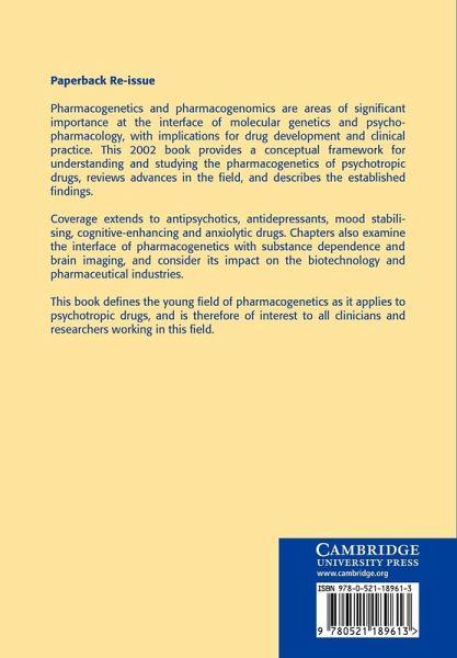 Pharmacogenetics and pharmacogenomics are areas of significant importance at the interface of molecular genetics and psychopharmacology, with implications for drug development and clinical practice. This 2002 book provides a conceptual framework for understanding and studying the pharmacogenetics of psychotropic drugs, reviews advances in the field, and describes the established findings. Coverage extends to antipsychotics, antidepressants, mood stabilising, cognitive-enhancing and anxiolytic drugs. Chapters also examine the interface of pharmacogenetics with substance dependence and brain imaging, and consider its impact on the biotechnology and pharmaceutical industries. This book defines the young field of pharmacogenetics as it applies to psychotropic drugs, and is therefore of interest to all clinicians and researchers working in this field.
