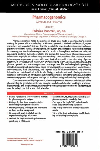 Comprehensive and highly practical, Pharmacogenomics: Methods and Protocols offers pharmacologists, geneticists, molecular biologists, and clinical chemists working in academia, biotechnology, and the pharmaceutical industry a cutting-edge collection of the key techniques used for today's preclinical and clinical studies.