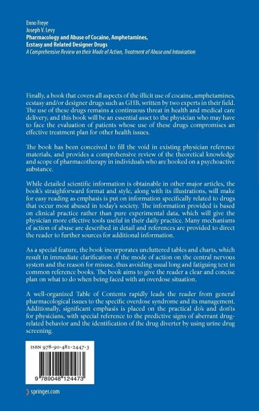 Finally - a book that covers all aspects of the illicit use of cocaine, amphetamines, ecstasy and/or designer drugs such as GHB, written by two experts in their field. The use of these drugs remains a continuous threat in health and medical care delivery, and this book will be an essential asset to the physician who may have to face the evaluation of patients whose use of these drugs compromises an effective treatment plan for other health issues.