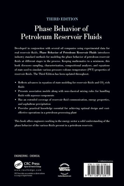 1. Petroleum Reservoir Fluids. 2. Sampling, Quality Control, and Compositional Analyses. 3. PVT Experiments. 4. Equations of State. 5. C7+ Characterization. 6. Flash and Phase Envelope Calculations. 7. PVT Simulation. 8. Thermal Properties. 9. Regression to Experimental PVT Data. 10. Transport Properties. 11. Wax Formation. 12. Asphaltenes. 13. Gas Hydrates. 14. Compositional Variations with Depth. 15. Gas Injection EOR. 16. Formation Water and Hydrate Inhibitors. 17. Scale Precipitation.
