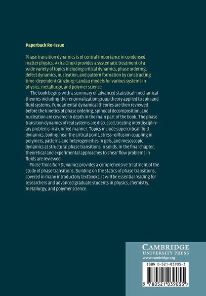 Phase transition dynamics is centrally important to current condensed matter physics. This book treats a wide variety of topics systematically by constructing time-dependent Ginzburg-Landau models for various systems in physics, metallurgy, and polymer science. Beginning with a summary of advanced statistical-mechanical theories including the renormalization group theory, the book reviews dynamical theories, and covers the kinetics of phase ordering, spinodal decomposition, and nucleation in depth. The phase transition dynamics of real systems are discussed, treating interdisciplinary problems in a unified manner. New topics include supercritical fluid dynamics, stress-diffusion coupling in polymers, and mesoscopic dynamics at structural phase transitions in solids. Theoretical and experimental approaches to shear flow problems in fluids are reviewed. Phase Transition Dynamics provides a comprehensive account, building on the statistical mechanics of phase transitions covered in many introductory textbooks. It will be essential reading for researchers and advanced graduate students in physics, chemistry, metallurgy, and polymer science.