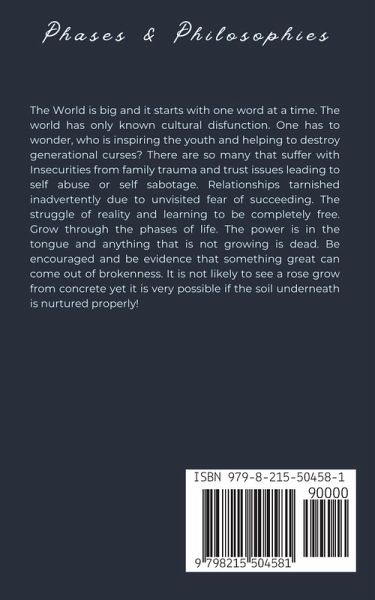 A "phase" is a period or stage in a series of events or a process of change and development. In life one must experience many different phases, some that may hinder progress and some may generate excellency. Life will present different options, to be a product of the environment or not to be, that is the question? To be a rebel if that is all that is seen or pick up a challenge and seek to know something better? The best decision that one can make is getting to know thyself. We all know that the wonders of the world is pollution and not positivity so anything that is not growing is dead. Pollution of the mind and spirit can be deadly to ones soul, whether they know or not. Check this out, the process and primary goal for planting physical seeds is to see the fruit, vegetable, flower, or tree sprout and become something greater than the beginning phase. All of which are very significant to the development of mankind. All of which yields life as do we when the man releases his sperm and it fertilizes the egg BOOM human life is formed. The greatest creation to be have been created! So, apply this same philosophy to our daily living. Everyday just try to exemplify the fruit of the spirit in small portions and watch what fruit yield from just being patient, or kind, or gentle. The thing about good and evil is that they both can not share the same space. "Philosophy" is the study of the fundamental nature of knowledge, reality, and existence, especially when considered as an academic discipline. There are several philosophical theories as to why one succeeds and why one fails. There are many factors that play a part in why one chooses evil over good. The biggest theory of them all is the creation story, thus that becoming just another philosophy for one to either believe or challenge. The beautiful thing about living is having the chance to figure out the development of mankind. Philosophy is one that no man can escape. It is the belief in something, the belief that what ever works for you works for you and why, and for how long? It makes us question everything that relates to the mind, to nature, to religion, to self especially. I struggled with philosophy for a long while. The unconcealed reality that was before me made me question everything needed to create placement for myself. Philosophy allowed me to never settle for all that meets the eye but that which touches the unseen as well. The things that triggered specific feelings and emotions and drive that part of me to revealed to me the greatest version of myself. Phases and Philosophies is a journey, a journey that many pray to get through and many can only dream about. Escaping the boundaries of the mind. The environmental bondage, the hurt the brokenness, breaking every chain. Learning to grow through life even if it does not seem perfect. There is no such thing as perfect but In this phase I have been governed with perfect peace. I am always growing and forever learning. The fruit of my loins is sweet. The journey must continue.