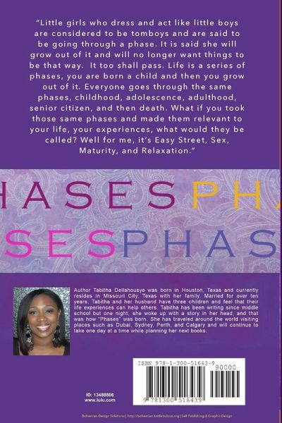 Life is a series of phases, you are born a child and then you grow out of it. Everyone goes through the same phases, childhood, adolescence, adulthood, senior citizen, and then death. What if you took those same phases and made them relevant to your life, your experiences, what would they be called? Well, for Olivia, it's Easy Street, Sex, Maturity, and Relaxation. Olivia Denise Adams is at a stand still, desperately trying to decide how to approach the next phase in her life. She takes the time to reflect on her past phases and how they have affected her and her attitude towards men, sex, marriage, and her career. Follow Olivia as she drifts through her phases from the mind of her minor self!¿
