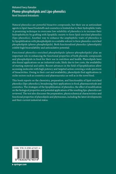 This book reports on the chemistry, preparation, and functionality of lipid-enriched phenolics (lipo-phenolics), broadening their applications in food, pharmaceuticals and cosmetics. The strategies of the lipophilization of phenolics, the effect of modification on the biological properties and potential applications of the resulting lipo-phenolics are reviewed. The text also discusses the preparation, physicochemical characteristics and functional properties of phenolipids and phytosomes, including the latest developments and their current industrial status.