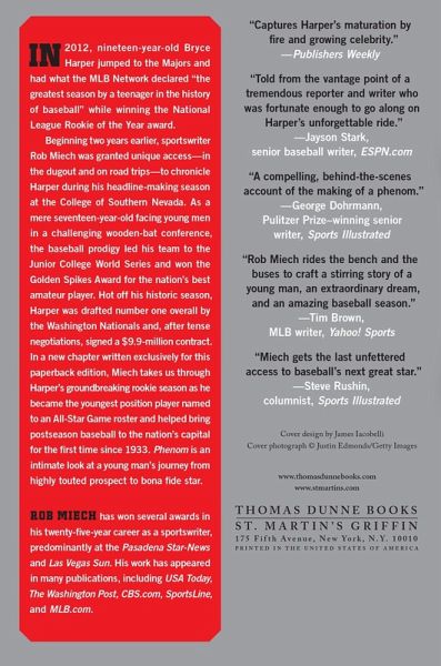 "The remarkable story of Bryce Harper's unforgettable ride from Morse Stadium to the top of the baseball draft" (Jayson Stark, ESPN.com) updated from the hardcover edition (The Last Natural) to include his Rookie of the Year season! Sporting a fresh cover and a bonus chapter that covers Harper's award-winning rookie season with the Washington Nationals, this expanded edition of Phenom (originally published as The Last Natural) gives fans an all-access pass to baseball's newest rising star. Before he famously became a Major League All-Star as a teenager, Harper already had dominated high school competition like Mickey Mantle on the playground and appeared on the cover of Sports Illustrated, which dubbed him the "most exciting prodigy since LeBron James." Seeking greater tests as a hitter, the precocious star got his GED after his sophomore year and enrolled at the College of Southern Nevada, where he would face future pro pitchers in a difficult wooden-bat league. Sportswriter Rob Miech was "embedded" with the team-in the dugout and locker room and on team buses and in motel rooms-to provide a warts-and-all account of a boy among men playing like a man among boys. Amid fascinating personal stories including the dynamics between a veteran coach and Harper's overprotective father, the jealousies of teammates and opponents, and the sudden descent of press armies on a tiny college field, the author chronicles a season-long experiment that culminates in Harper leading the Coyotes to the Junior College World Series and signing a $9.9 million contract negotiated by notorious agent Scott Boras.