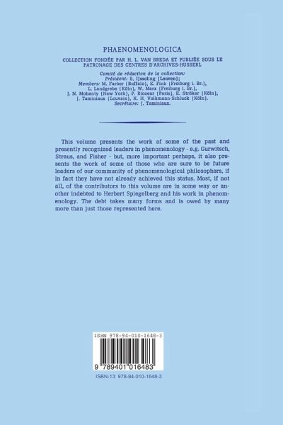 Professor H. L. Van Breda had hoped to write this preface, but his recent, unexpected and untimely death has left that task in my hands. Although my remarks will not be as eloquent and insightful as his surely would have been, some few words are clearly in order here; for the phenomenological community has not only lost the leadership of Fr. Van Breda these last years, but also the scholarship and leadership of Aron Gurwitsch and Alden Fisher - both contributors to this volume - as well as that of Dorion Cairns and John Wild. Our leaders are fewer now but Herbert Spiegelberg is still very obviously one of them. This volume thus presents the work of some of the past and presently recognized leaders in phenomenology - e. g. Gurwitsch, Straus, and Fisher - but, more important perhaps, it also presents the work of some of those who are sure to be future leaders of our community of phenomenological philosophers, if in fact they have not already achieved this status. Most, if not all, of the contribu tors to this volume are in some way or another indebted to Herbert Spiegelberg and his work in phenomenology.