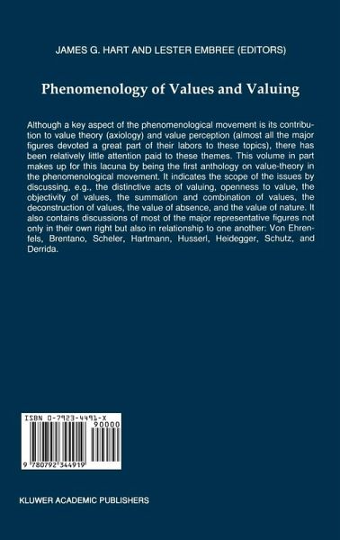 Although a key aspect of the phenomenological movement is its contribution to value theory (axiology) and value perception (almost all the major figures devoted a great part of their labors to these topics), there has been relatively little attention paid to these themes. This volume in part makes up for this lacuna by being the first anthology on value-theory in the phenomenological movement. It indicates the scope of the issues by discussing, e.g., the distinctive acts of valuing, openness to value, the objectivity of values, the summation and combination of values, the deconstruction of values, the value of absence, and the value of nature. It also contains discussions of most of the major representative figures not only in their own right but also in relationship to one another: Von Ehrenfels, Brentano, Scheler, Hartmann, Husserl, Heidegger, Schutz, and Derrida.