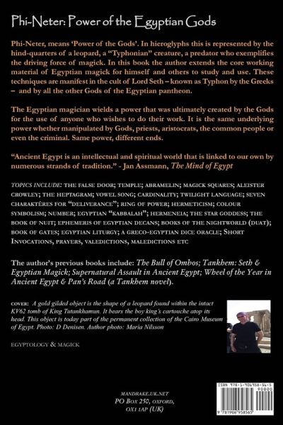 Phi-Neter, means 'Power of the Gods'. In hieroglyphs this is represented by the hind-quarters of a leopard, a "Typhonian" creature, a predator who exemplifies the driving force of magick. In this book the author extends the core working material of Egyptian magick for himself and others to study and use. These techniques are manifest in the cult of Lord Seth - known as Typhon by the Greeks - and by all the other Gods of the Egyptian pantheon. The Egyptian magician wields a power that was ultimately created by the Gods for the use of anyone who wishes to do their work. It is the same underlying power whether manipulated by Gods, priests, aristocrats, the common people or even the criminal. Same power, different ends. "Ancient Egypt is an intellectual and spiritual world that is linked to our own by numerous strands of tradition." - Jan Assmann, The Mind of Egypt topics include: the false door; temple; abramelin; magick squares; aleister crowley; the heptagram; vowel song; cardinality; twilight language; seven charaktêres for "deliverance"; ring of power; hermeticism; colour symbolism; number; egyptian "kabbalah"; hermeneia; the star goddess; the book of nuit; ephemeris of egyptian decans; books of the nightworld (duat); book of gates; egyptian liturgy; a greco-egyptian dice oracle; Short Invocations, prayers, valedictions, maledictions etc