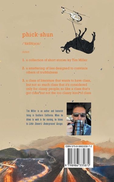 phick·shun /¿fikSH(¿)n/ noun 1. a collection of short stories by Tim Miller 2. a smattering of lies designed to convince others of truthfulness 3. a class of literature that wants to have class, but not so much class that it's considered only for classy people; so like a class that's got class but not the too classy kind of class