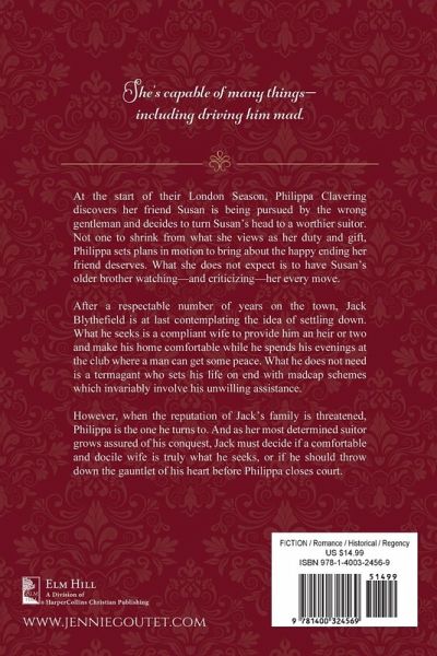 After a respectable number of years on the town, Jack Blythefield is at last contemplating the idea of settling down. What he seeks is a compliant wife and not the managing Philippa Clavering who turns his life upside down. If only she were not so often underfoot--and not so beguiling.
