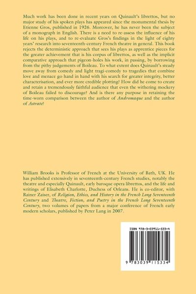 The Author: William Brooks is Professor of French at the University of Bath, UK. He has published extensively in seventeenth-century French studies, notably the theatre and especially Quinault, early baroque opera librettos, and the life and writings of Elisabeth Charlotte, Duchess of Orleans. He is co-editor, with Rainer Zaiser, of Religion, Ethics, and History in the French Long Seventeenth Century and Theatre, Fiction, and Poetry in the French Long Seventeenth Century , two volumes of papers from a major conference of French early modern scholars, published by Peter Lang in 2007.