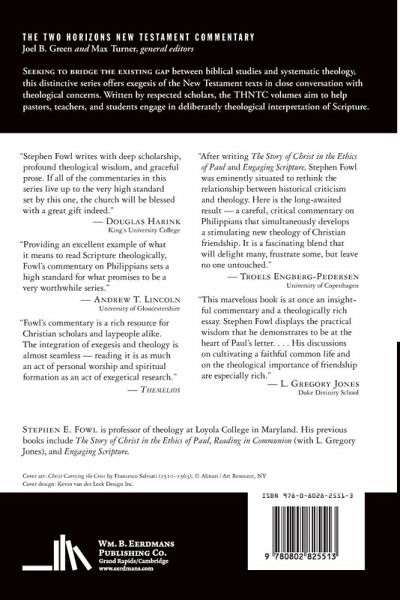 In this fine new commentary on Paul's letter to the Philippians, Stephen Fowl notes that for the great premodern commentators of the Christian tradition, the literal sense of Scripture is always regulated by theological concerns. Thus, unlike commentaries that simply append theology to historical criticism, Fowl's volume displays disciplined attention to the text of Philippians in ways that enhance rather than frustrate theological inquiry. While Fowl engages the great scholars of the past, John Chrysostom and Thomas Aquinas among them, he also draws a novel theology of friendship from Paul's letter and unpacks how the teachings of Philippians might be embodied today by Christians in the West.