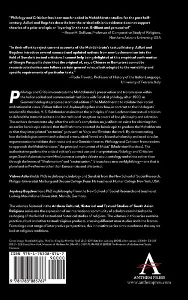 Vishwa Adluri holds PhDs in philosophy, Indology and Sanskrit from the New School for Social Research, Philipps-Universität Marburg and Deccan College. He teaches at Hunter College, New York, USA. Joydeep Bagchee has a PhD in philosophy from the New School for Social Research and teaches at Ludwig-Maximilians-Universität, Munich, Germany.