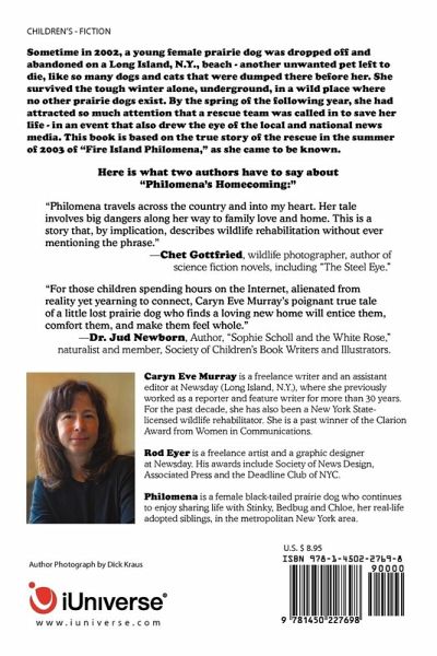 Sometime in 2002, a young pet prairie dog was abandoned on a Long Island, N.Y., beach. This book is based on her story. Here is what two authors have to say about "Philomena's Homecoming:" "Philomena travels across the country and into my heart. Her tale involves big dangers along her way to family, love and home. This is a story that, by implication, describes wildlife rehabilitation without ever mentioning the phrase." -- Chet Gottfried, wildlife photographer, author of "The Steel Eye." "For those children spending hours on the Internet, alienated from reality yet yearning to connect, Caryn Eve Murray's poignant true tale of a little lost prairie dog who finds a loving new home will entice them, comfort them, and make them feel whole." --Dr. Jud Newborn, Author, "Sophie Scholl and the White Rose," and member, Society of Children's Book Writers and Illustrators.