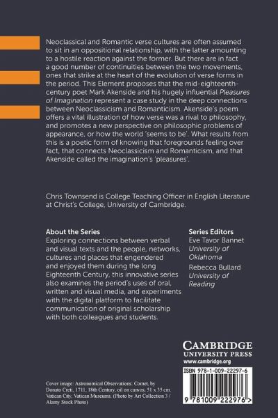 This Element proposes that the mid-eighteenth-century poet Mark Akenside, and his hugely influential Pleasures of Imagination, represent a case study in the deep connections between Neoclassicism and Romanticism.