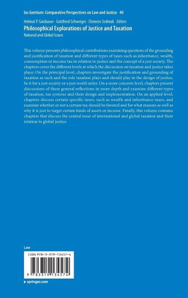 List of Contributors .- Outlining the Field of Tax Justice; Helmut P. Gaisbauer, Gottfried Schweiger and Clemens Sedmak.- Section I: Grounding Taxation.- Fiscal Justice and Justified Trust; Clemens Sedmak ∧ Helmut P. Gaisbauer.- Taxation and the Duty to Alleviate Poverty; Gottfried Schweiger.- Justice, Equality and Taxation; Dietmar von der Pfordten.- 'You did not build that road' - Reciprocity, Benefits, Opportunities and Taxing the Extremely Rich; Bruno Verbeek.- The Challenge of Tax Avoidance for Social Justice in Taxation; Benjamin Alarie.- Section II: Justifying different Types of Taxation.- Why Taxing Consumption? Justifications, Objections and Social Cooperation; Xavier Landes.- Egalitarianism and Consumption Tax; Daniel Halliday.- Ethical Taxation: Progressivity, Efficiency and Hourly Averaging; Douglas Bamford.- Why do the Public Oppose Inheritance Taxes?; Rajiv Prabhakar.- The Role of Expressive versus Instrumental Preferences in U.S. Attitudes toward Taxation and Redistribution; Kirk Stark.- Section III: International and Global Taxation.- What Burden should Fiscal Policy Bear in Fighting Global Injustice?; Gillian Brock.- A Global Luxuries Tax; Timothy Mawe and Vittorio Bufacchi.- Taxation: Its Justification and Application to Global Contexts; Teppo Eskelinen and Arto Laitinen.