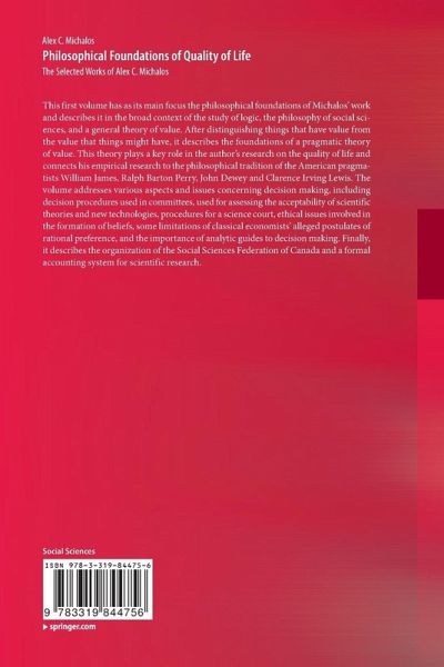 This first volume has as its main focus the philosophical foundations of Michalos' work and describes it in the broad context of the study of logic, the philosophy of social sciences, and a general theory of value. After distinguishing things that have value from the value that things might have, it describes the foundations of a pragmatic theory of value. This theory plays a key role in the author's research on the quality of life and connects his empirical research to the philosophical tradition of the American pragmatists William James, Ralph Barton Perry, John Dewey and Clarence Irving Lewis. The volume addresses various aspects and issues concerning decision making, including decision procedures used in committees, used for assessing the acceptability of scientific theories and new technologies, procedures for a science court, ethical issues involved in the formation of beliefs, some limitations of classical economists' alleged postulates of rational preference, and the importanceof analytic guides to decision making. Finally, it describes the organization of the Social Sciences Federation of Canada and a formal accounting system for scientific research.